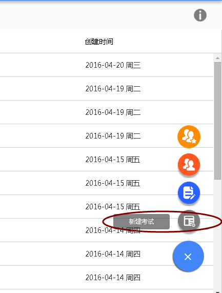 ◎新建考试:点击考试信息页面右下角的”新建考试”按钮即可;