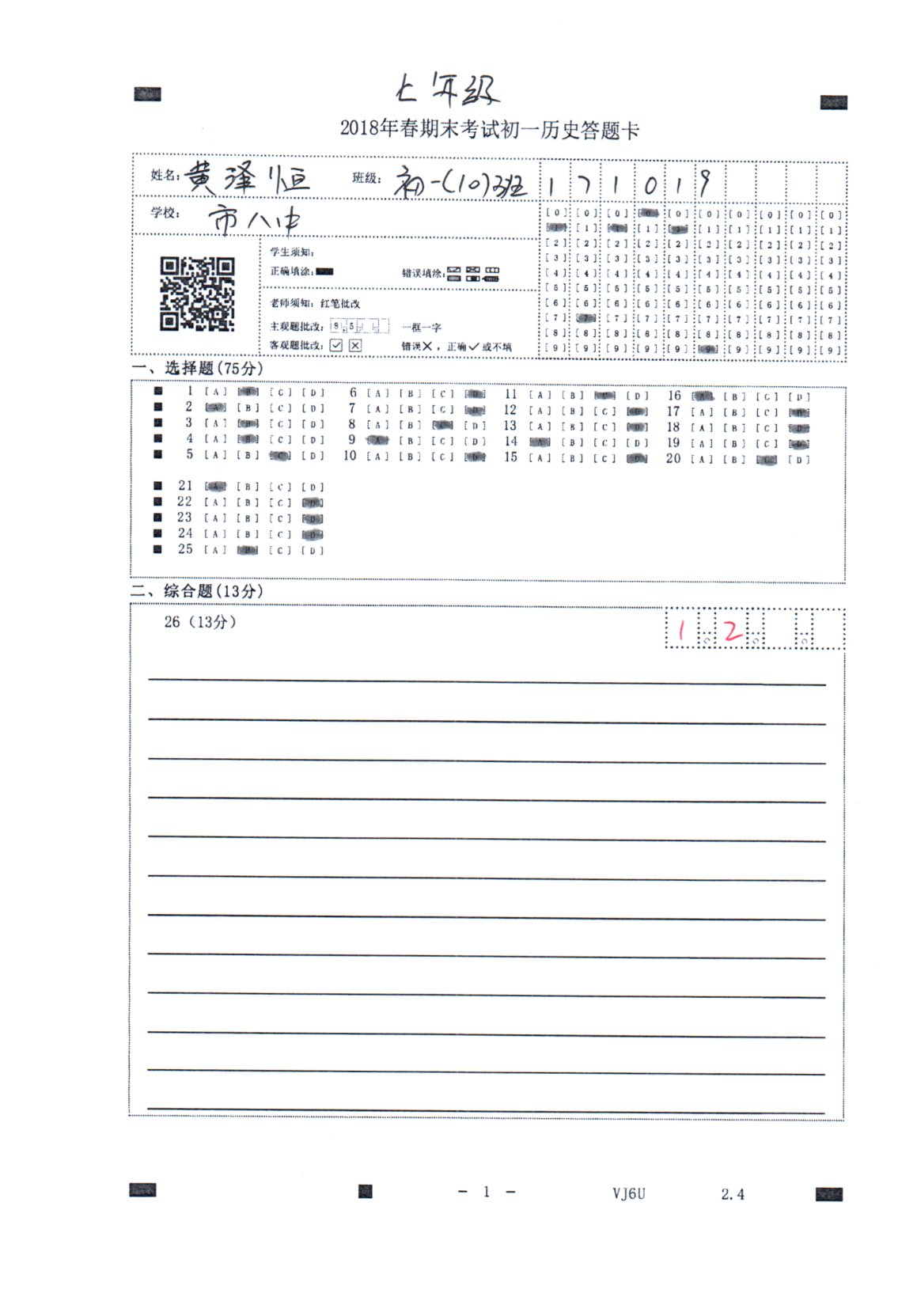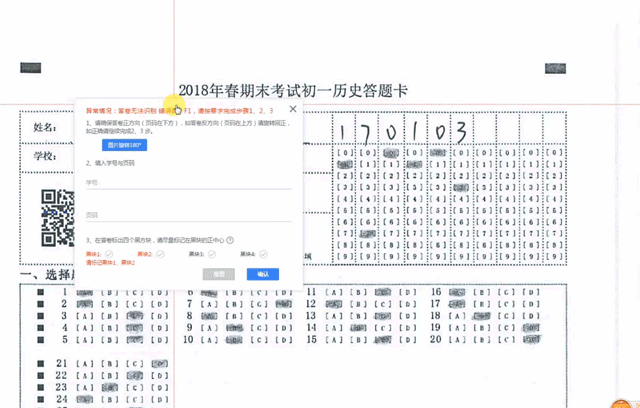 1、请确保答卷正方向(页码在下方),如答卷反方向(页码在上方)请旋转回正,如正确请继续完成2、3 步。