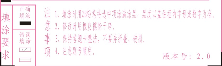 (1)填涂时用2B铅笔将选中项涂满涂黑,黑度以盖住框内字母或者数字为准;