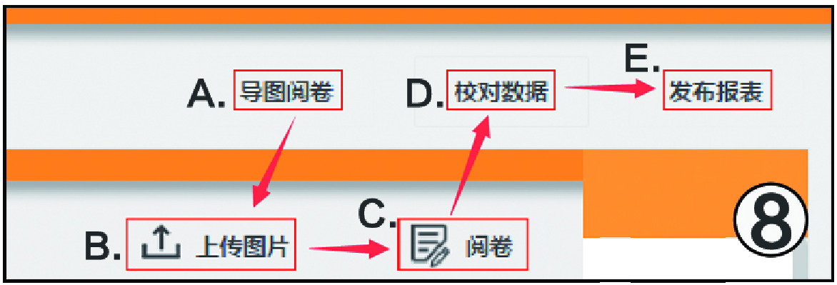 上传完后点击“阅卷”,阅卷完成后有异常的答卷需到“校对数据”手动修改,完成修改后,再点击“发布报表”,即可查看成绩报表。图9智能阅卷流程图