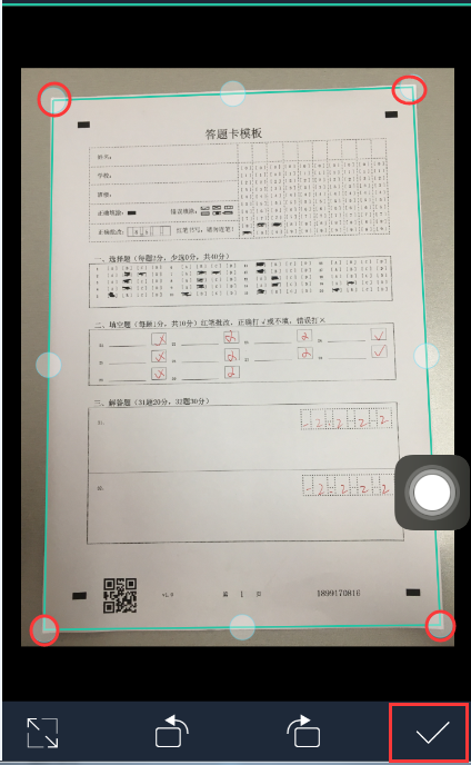 【调整位置】图4四个红色圆圈对应的试卷四个角位置对正,然后点击右下角确定