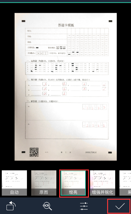 5、系统生成的答题卡打印进行考试,回收答题卡进行手机拍照阅卷。