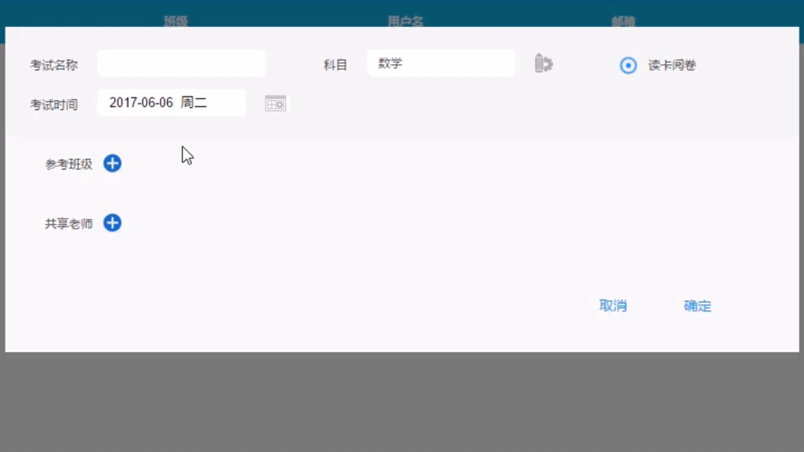 考试授权可通过设置共享老师,授权学校/机构内不同账号同时修改/查看该场考试