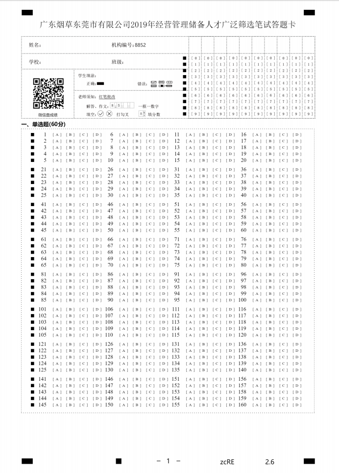 对于这次招聘考试,题型和题量都是固定的,整个备考其实只有两个步骤:输入学号、设计答题卡。可以现在系统中按操作先设置好答题卡并印刷,可选择普通的A4纸张。