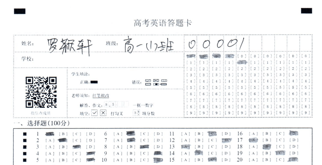 在考试中,有些同学填写自己的学号是正确的,但填涂时就容易涂错,造成填写学号与填涂学号不一致,导致出现学号异常让老师校对,增加老师的工作量。把学号填涂减掉后,学生只需手写学号,系统就能识别,不仅减少学生考试的填涂量,还能减少出现错误的概率,减轻老师校对的工作量。