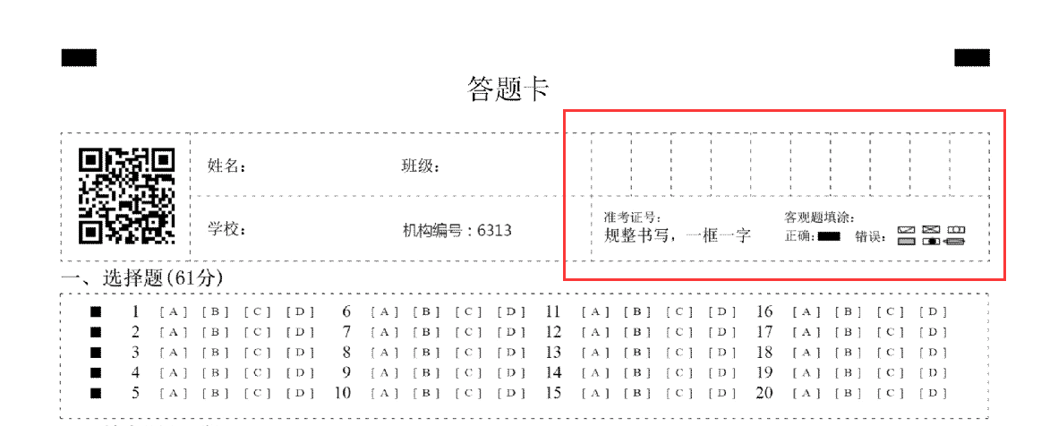 5月14日,易100阅卷系统扫描版将发布V2.6版本答题卡,新版答题卡不需学生再填涂学号。