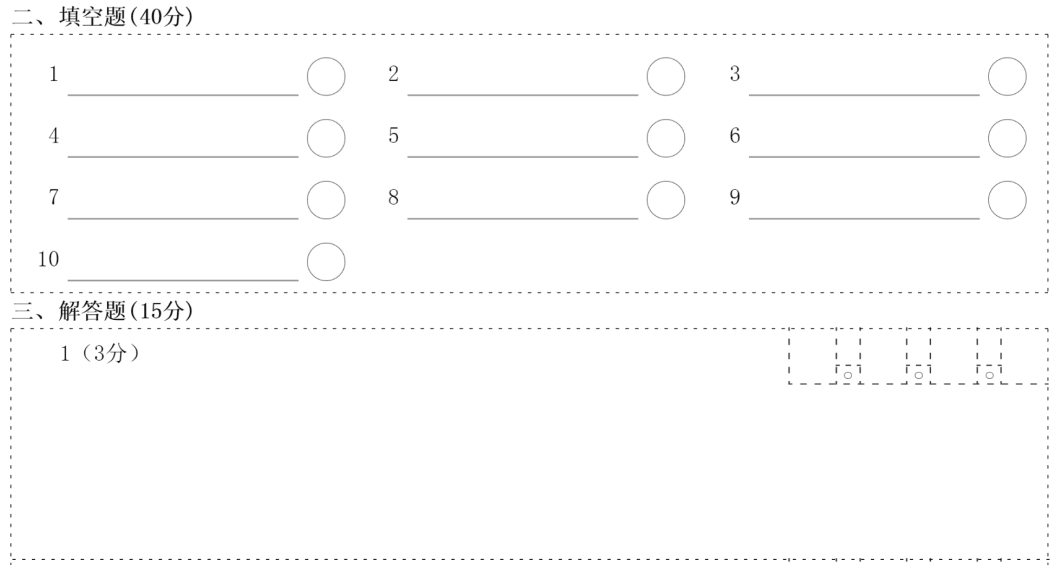 原有答题卡题与题之间,是采用实线框,新版将由实线框变成虚线框,整个版面整洁许多,且减少速印机油墨太多可能会造成的影响,大大提升老师主观题手写打分的识别率。